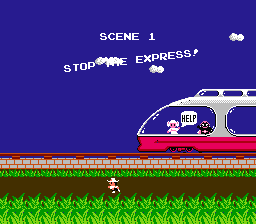 最初は電車面 赤ら顔のお姫様を助けよう… と思いきや、指示は違う… 姫はどうでもいいのか? |